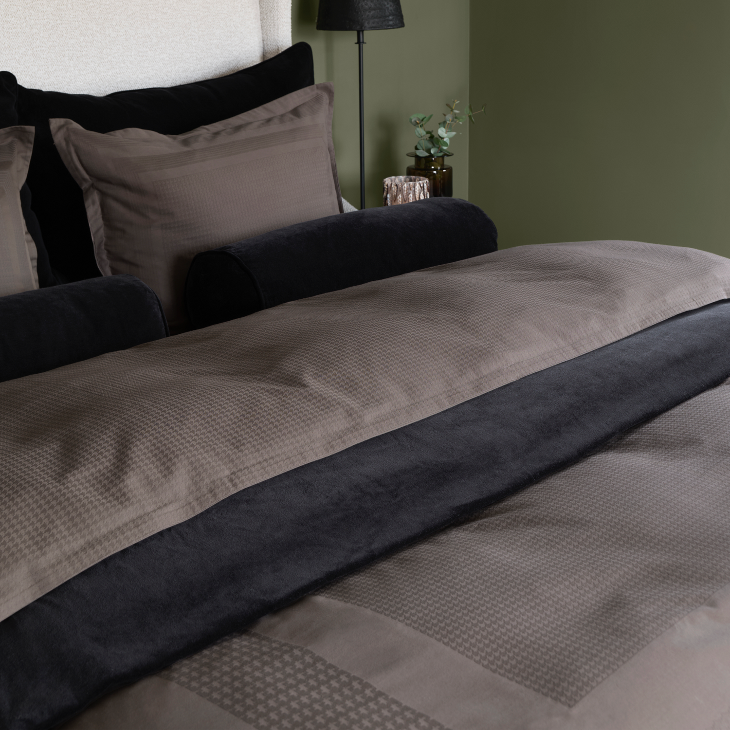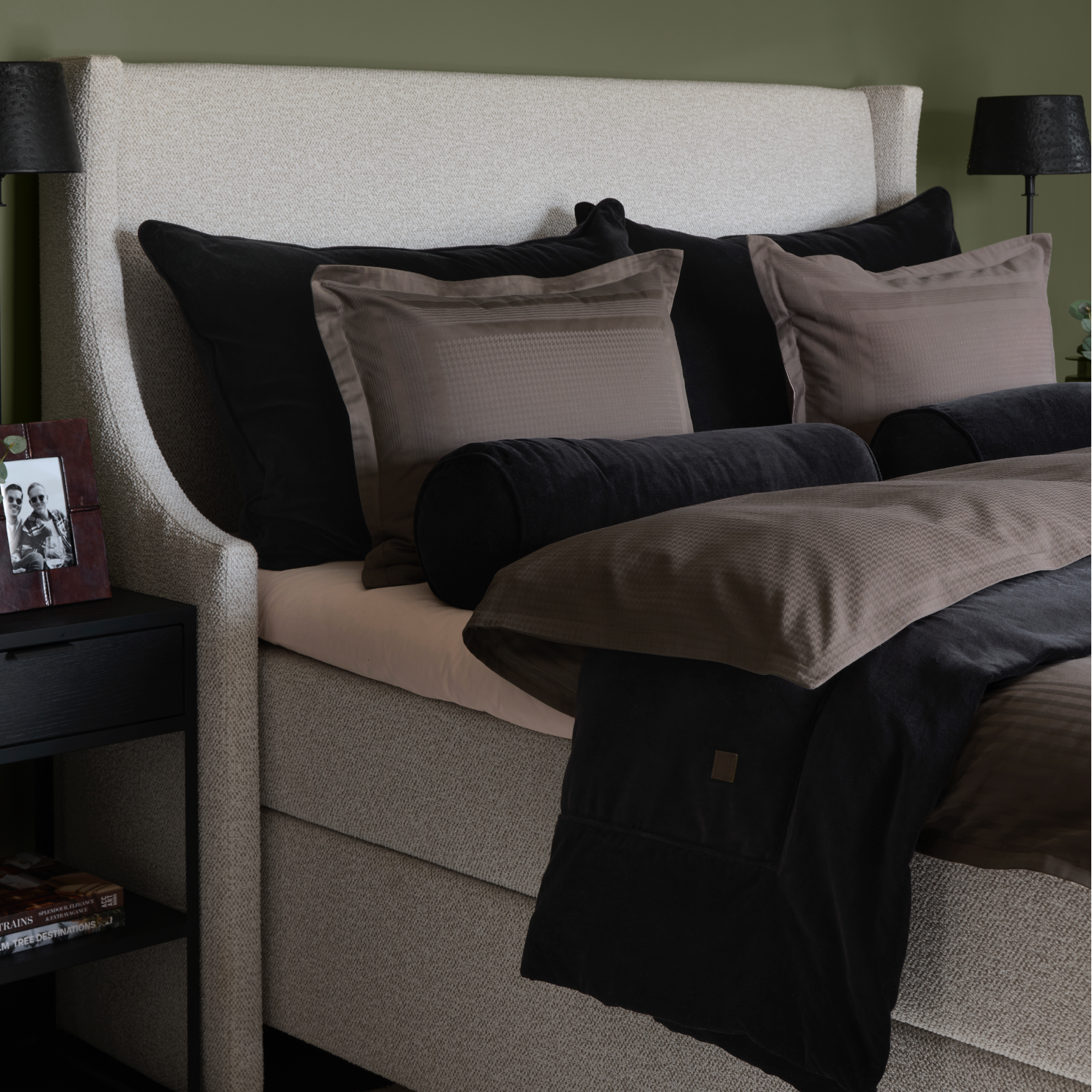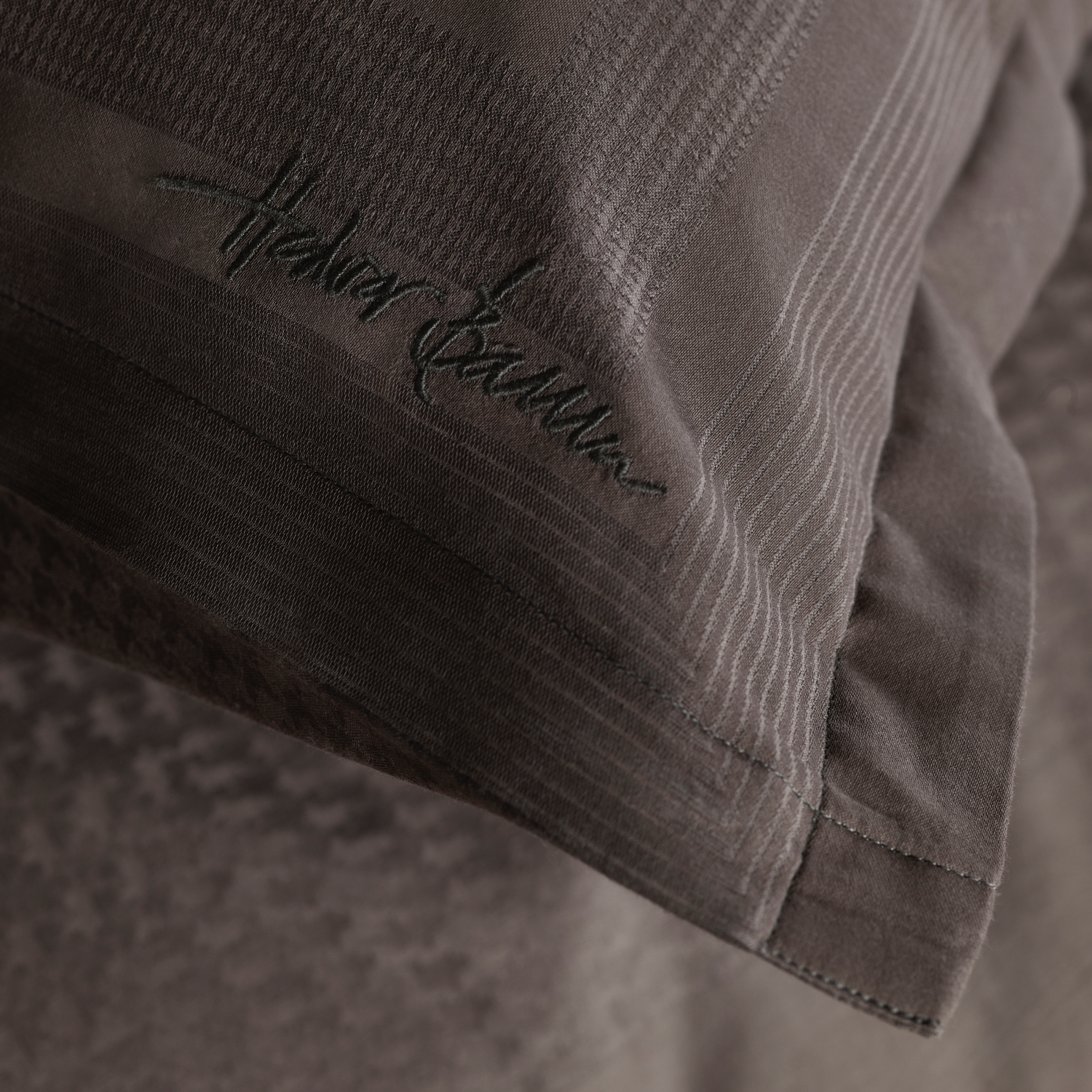 Exo sengesett fra Halvor Bakke kombinerer eksklusiv kvalitet med diskret luksus. Laget i jacquardvevd bomullssateng med TC 400, vevd av lange, fine bomullsfibre som gir en silkemyk overflate og elegant glans.