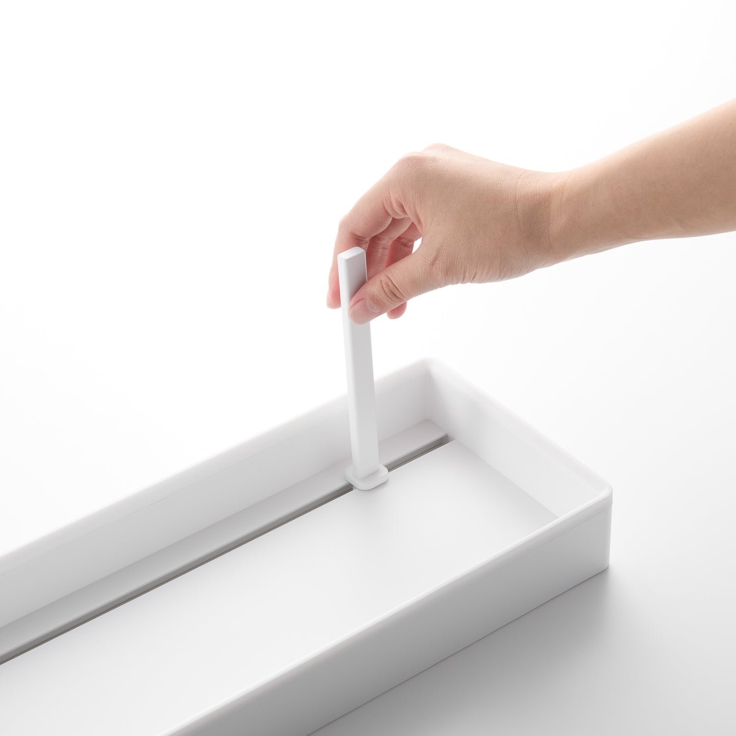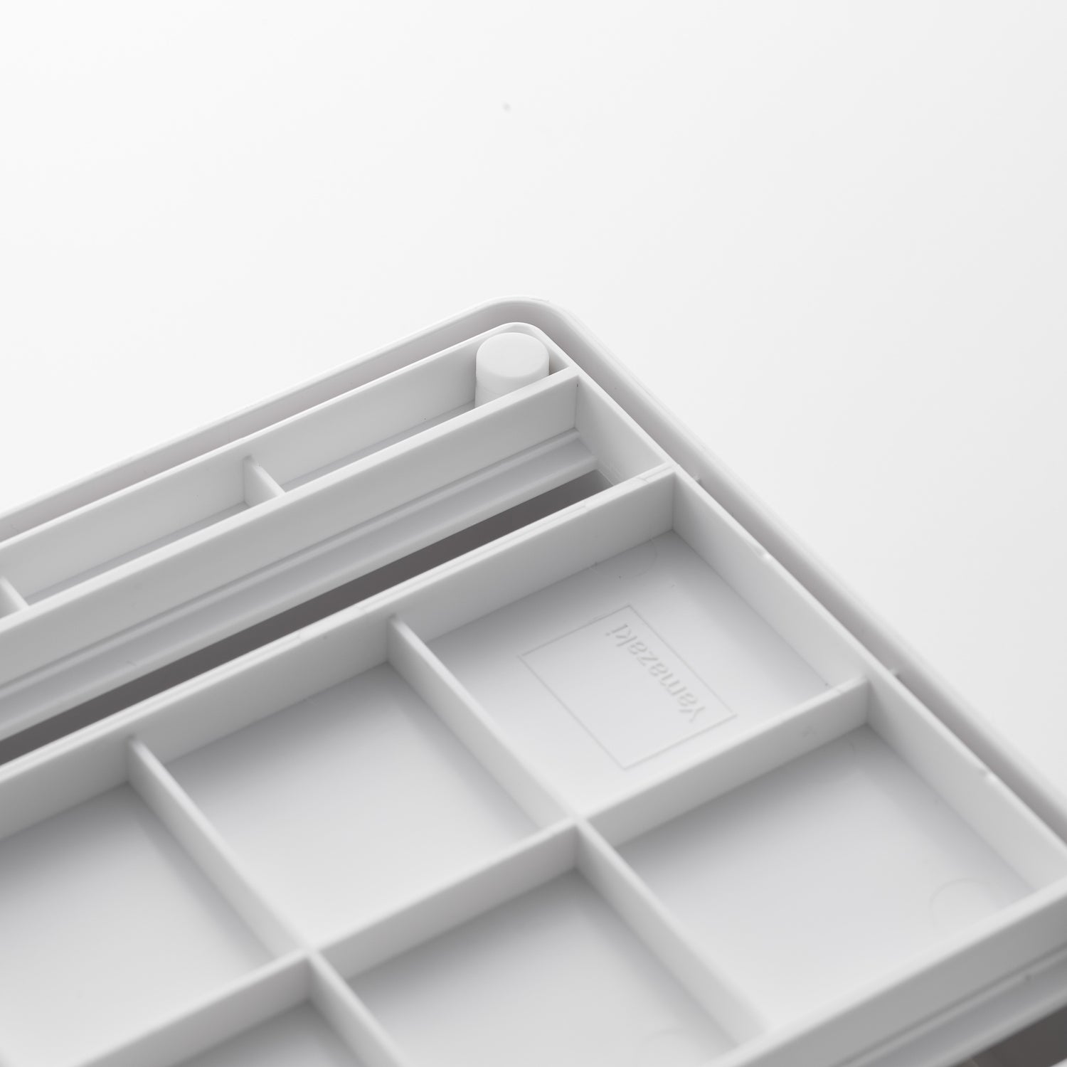 Bunnen er utstyrt med en sklisikker matte som sørger for at alt står stødig, selv ved åpning og lukking av skuffer. Perfekt for å utnytte plassen i kjøkkenskapet eller skuffen, og for å slippe rot blant kokekar og lokk.