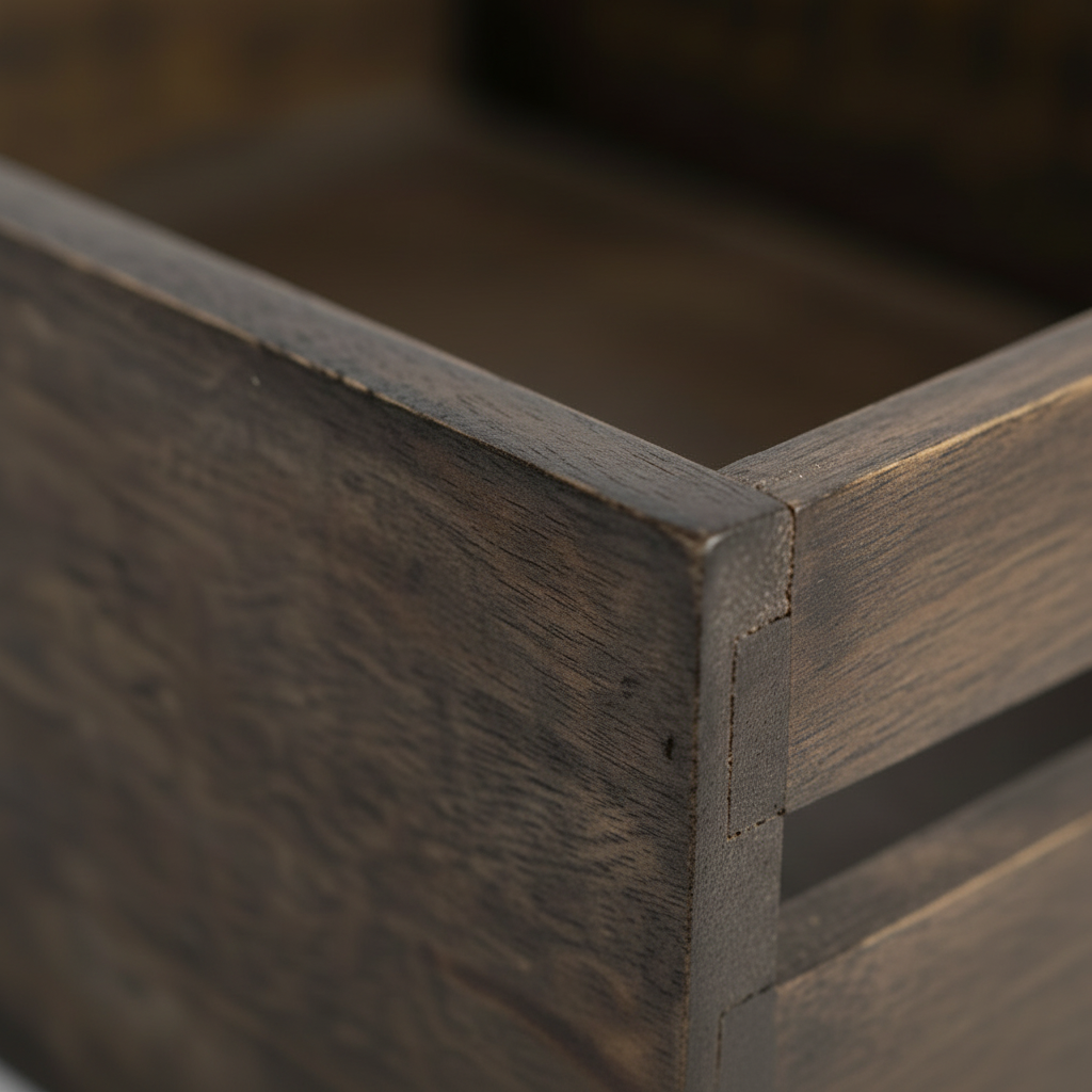 Denne håndlagde kurven i mangotre kombinerer funksjonalitet med organisk skjønnhet. Den mørke sort/brune finishen fremhever trevirkets naturlige tekstur og gir en varm, eksklusiv følelse til interiøret.