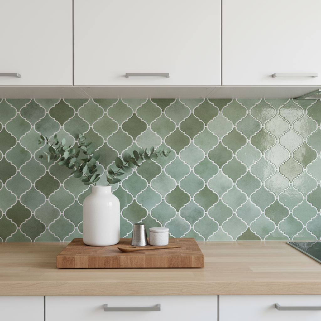 Vil du oppgradere kjøkkenet uten å rive gamle fliser? Lanterne grønn gir deg et dekorativt flisemønster i myke grønntoner som gir veggen et nytt uttrykk på få timer.