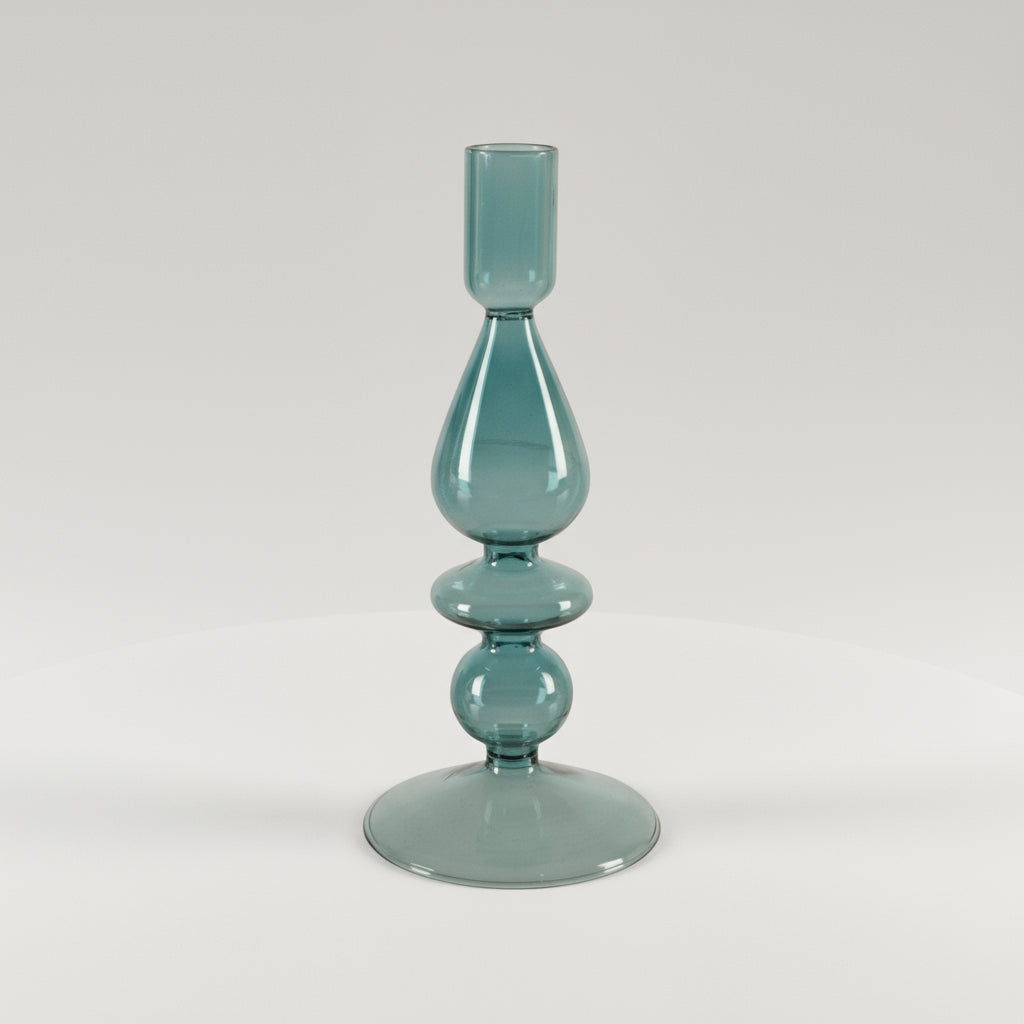 Lysestake kronelys glass blå 9 x 20,5 cm