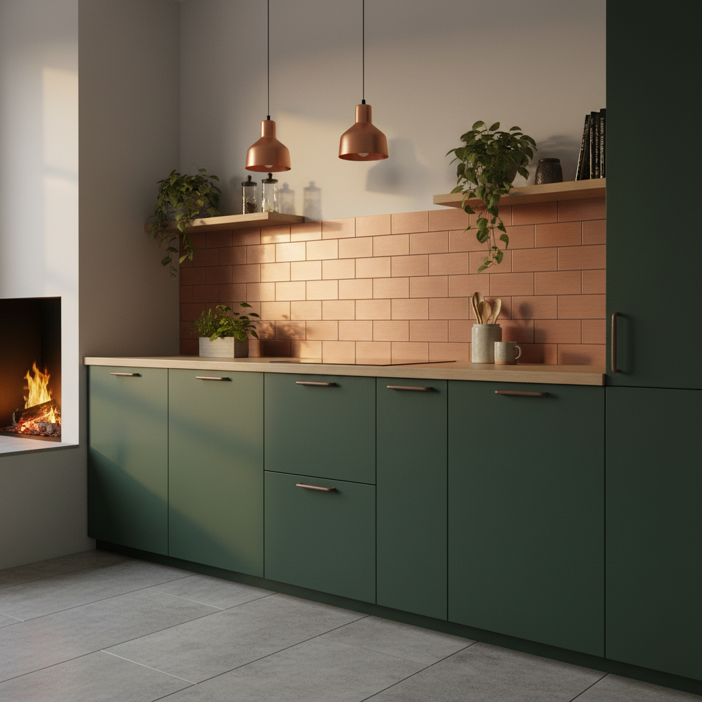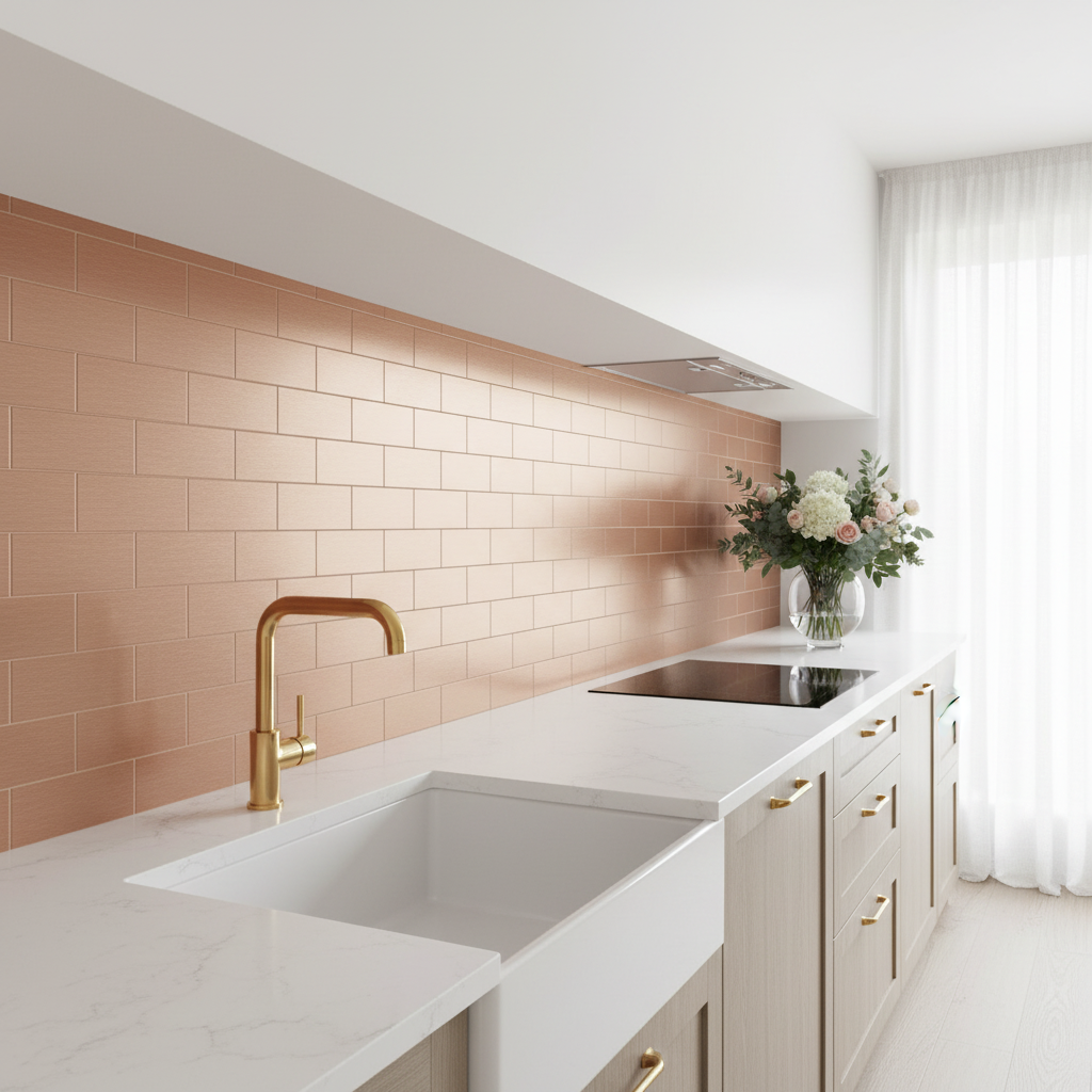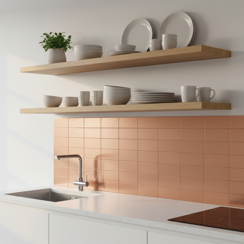 Med selvklebende bakside og børstet kobberlook får du en løsning som er enkel å montere og lett å tilpasse. Flisene passer godt for deg som vil fornye kjøkkenvegg, nisje, gang eller andre tørre soner uten omfattende oppussing. Overflaten er slitesterk og enkel å rengjøre, noe som gjør dem praktiske i rom som brukes hver dag.