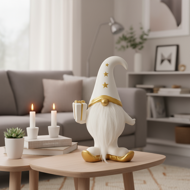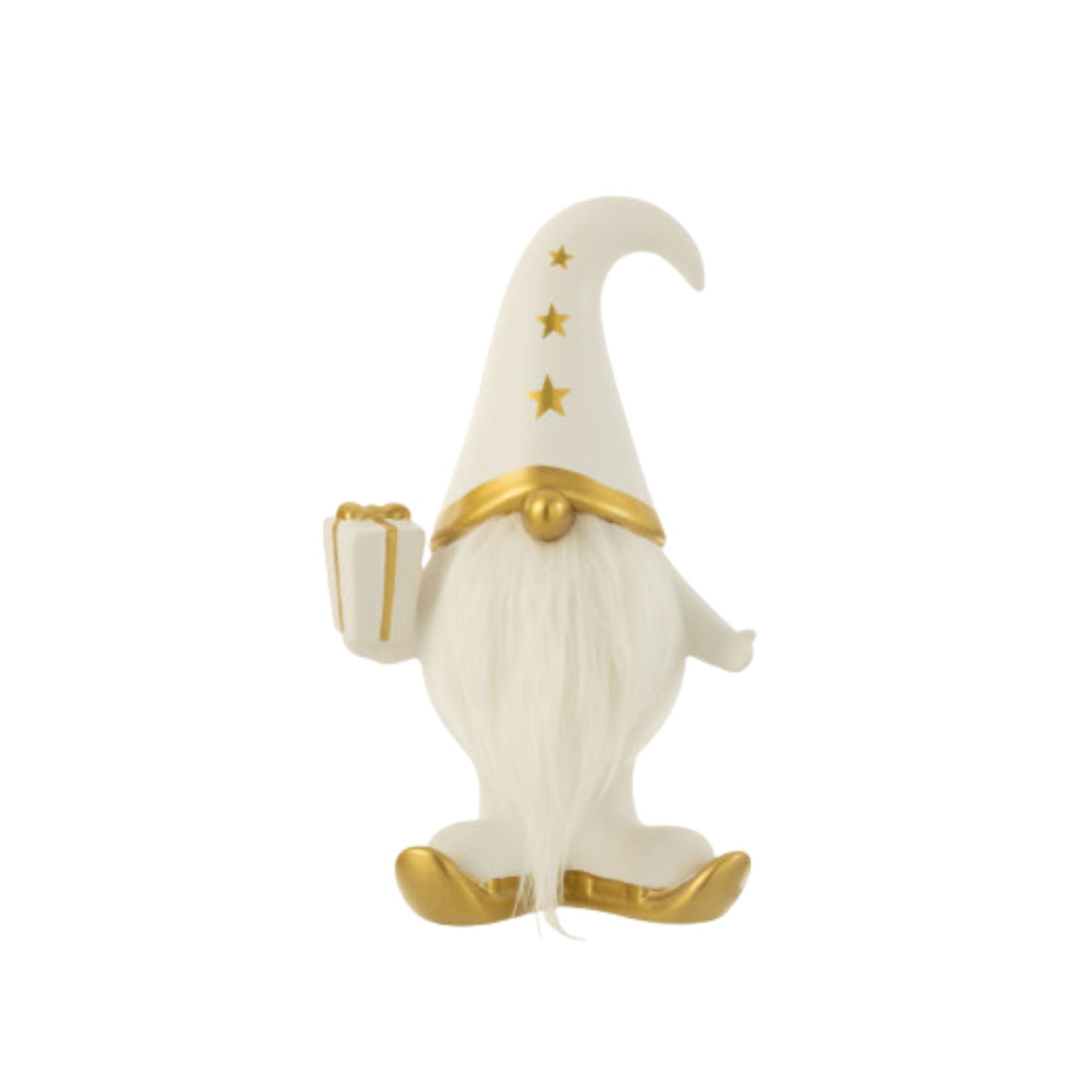 Lekker nissefigur i hvitt og gull laget i slitesterkt keramikk. Den moderne designen kombinert med klassiske detaljer gjør denne figuren til et perfekt innslag i juledekorasjonen.