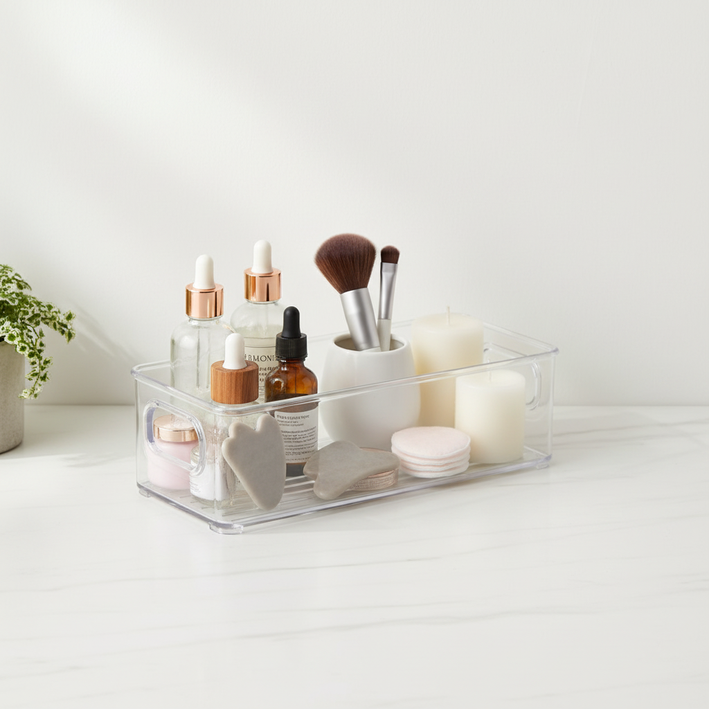 Finn ting raskt og enkelt på grunn av det gjenomsiktige materiale. Få orden i skuffer, skap eller kjøleskapet med denne praktiske oppbevaringsboksen.