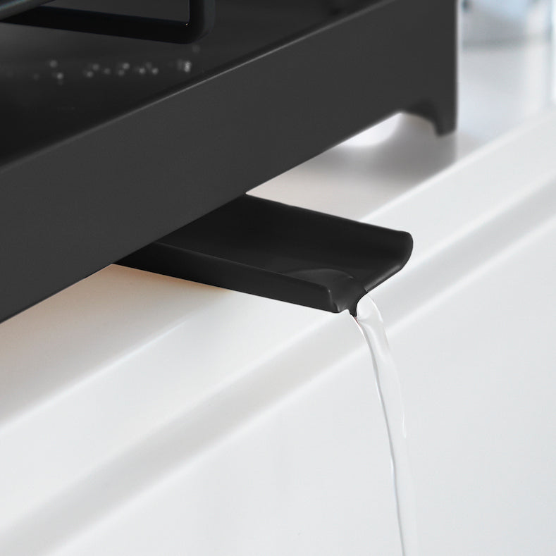 Dette oppvaskstativet i sort metall gir et moderne uttrykk på kjøkkenet ditt. Med en praktisk drypprenne ledes overflødig vann direkte tilbake i vasken, noe som holder benkeplaten tørr og ren.