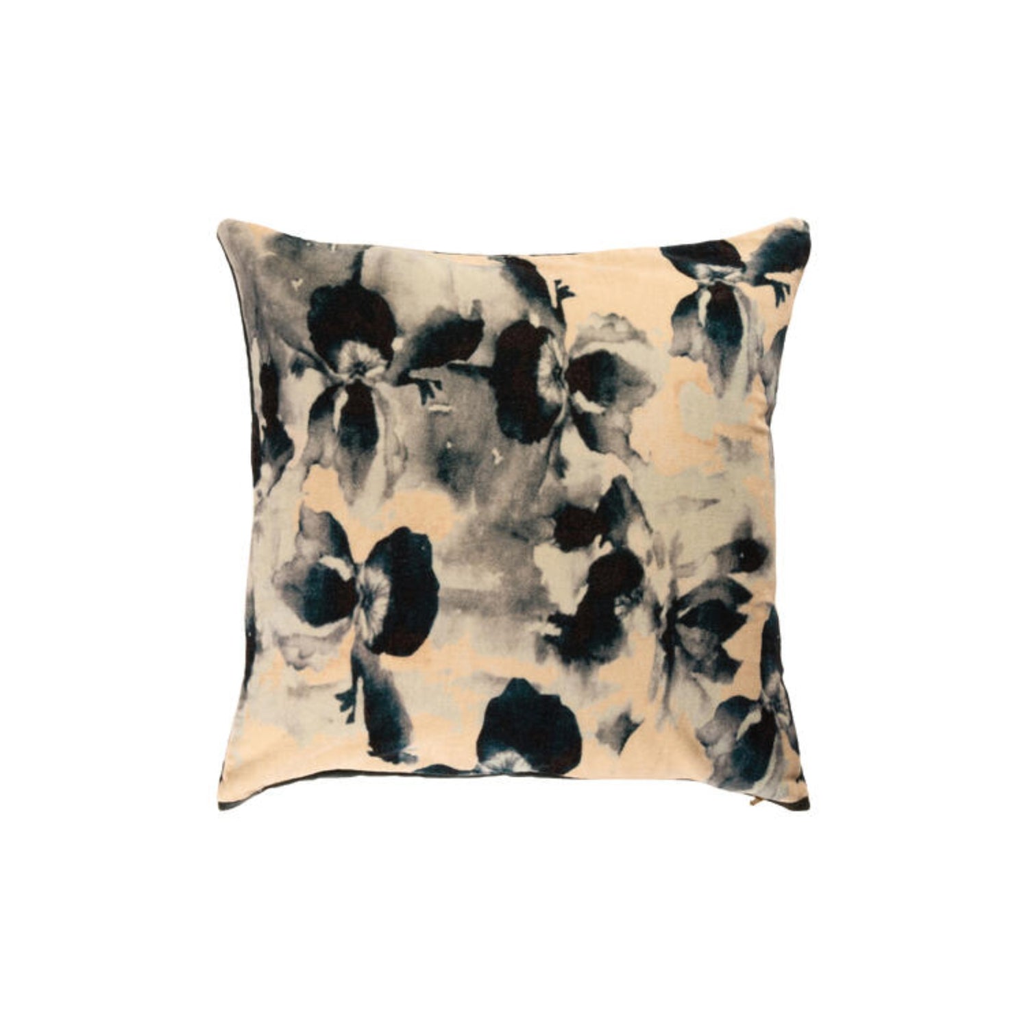 Dekorativt putetrekk i blå velur med moderne akvarelltrykk. Det myke materialet reflekterer lys på en elegant måte og gir en varm, lun stemning. Passer perfekt i kombinasjon med ensfargede puter i blått, grått eller beige.
