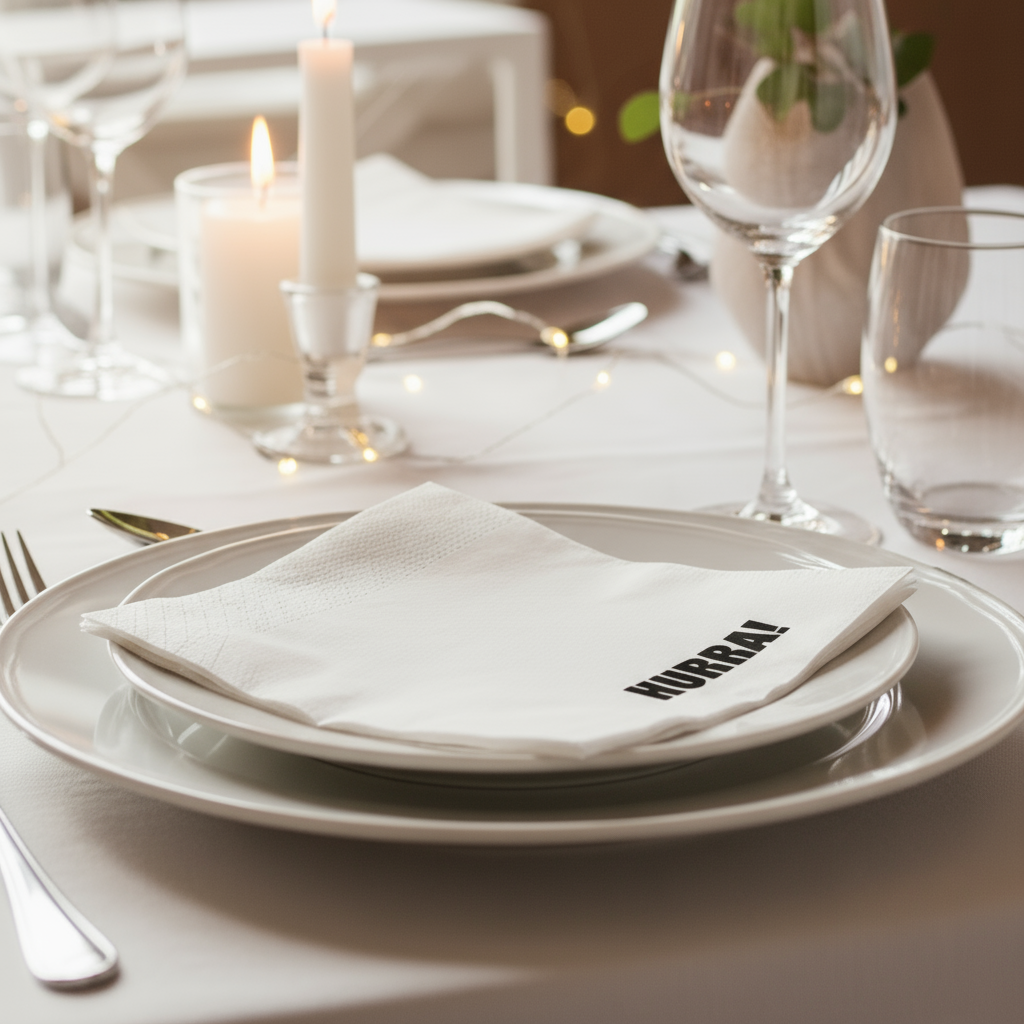Feir store og små anledninger med disse hvite serviettene med teksten HURRA.