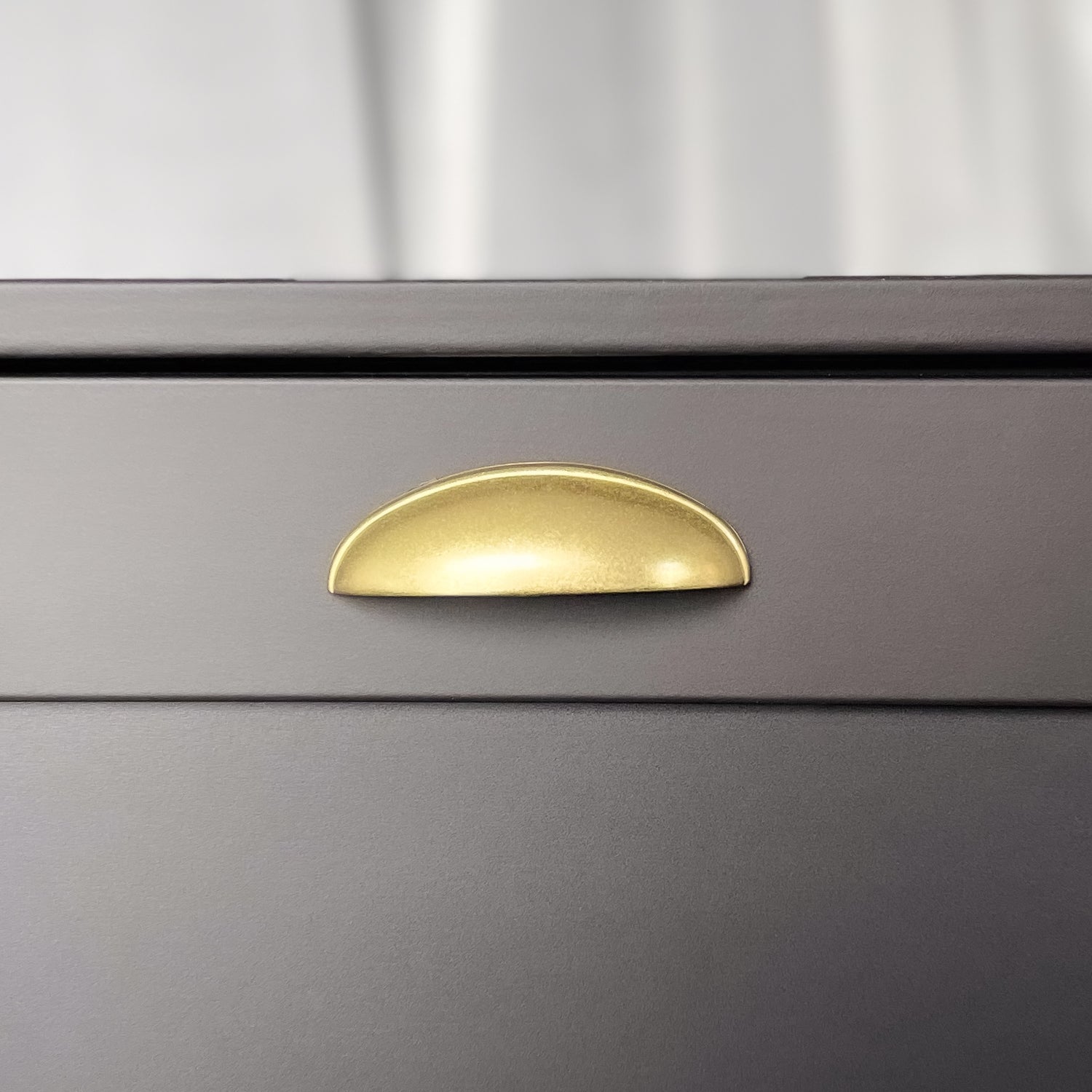 Moderne håndtaket med et lekkert design i en gull som gir et lekkert uttrykk til rommet. Dette håndtaket gir en ny stil til ethvert møbel, skap eller skuff.