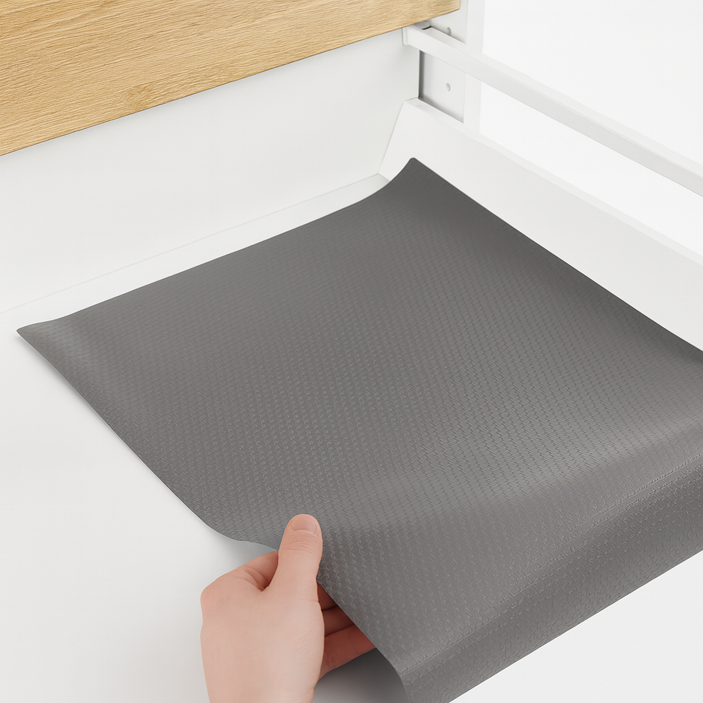 Dette grå skuffeinnlegget gir deg nettopp det – ro, orden og kontroll. Den myke, sklisikre overflaten holder alt trygt på plass, samtidig som den demper lyd og beskytter både skuffer og innhold mot riper og slitasje.