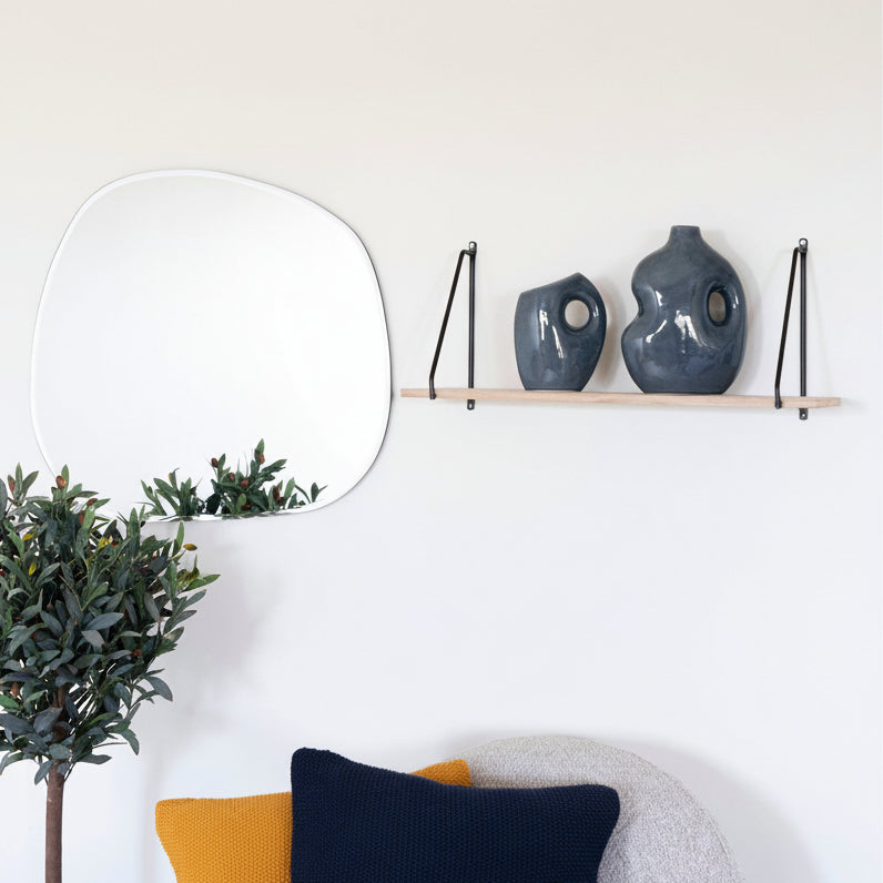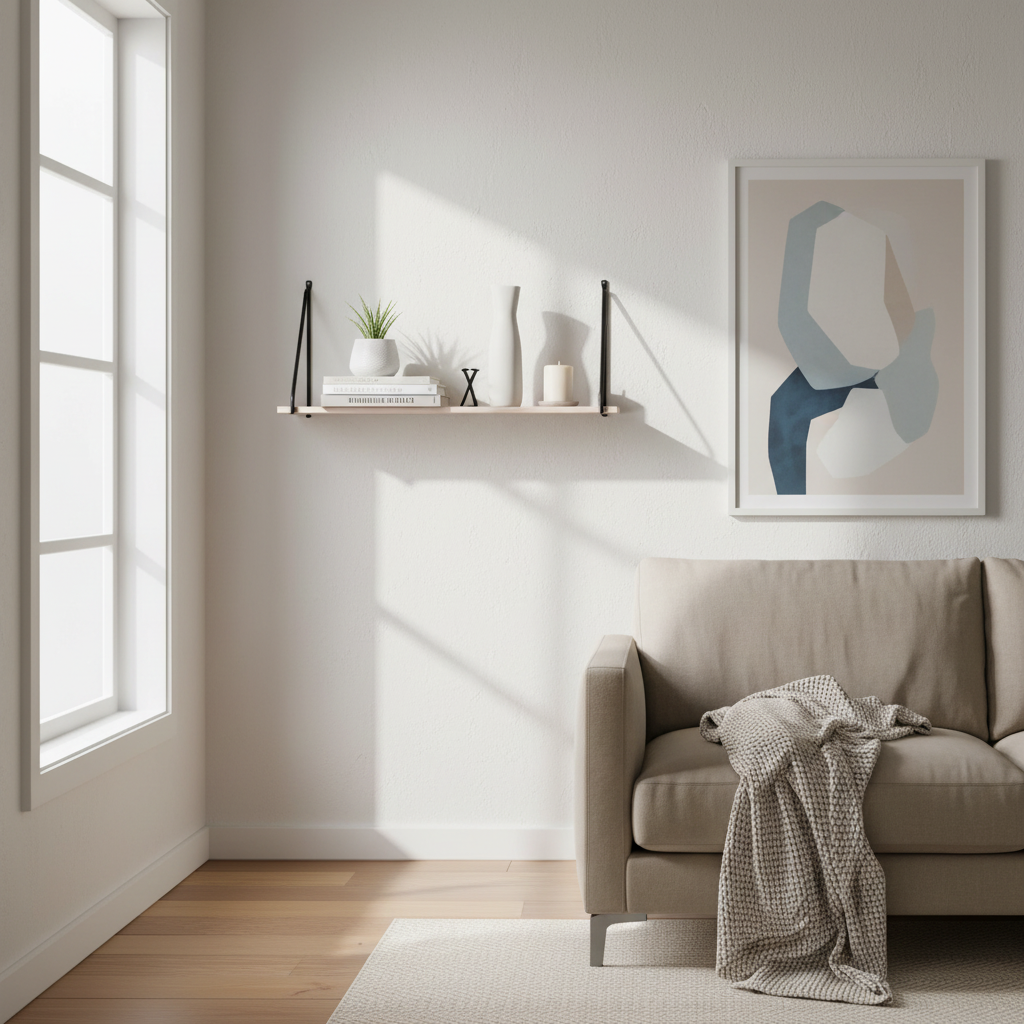 Med 65 cm bredde passer hyllen godt på mindre veggflater eller som en del av en større veggkomposisjon. Den smale dybden på 17 cm gjør den ideell til dekor, små planter og rammer uten at den bygger for langt ut i rommet.