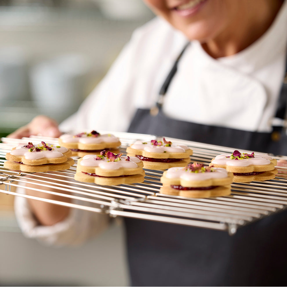 Gi bakverket riktig avslutning. En god avkjølingsrist sørger for at luft sirkulerer under brød og kaker slik at bunnen holder seg sprø.