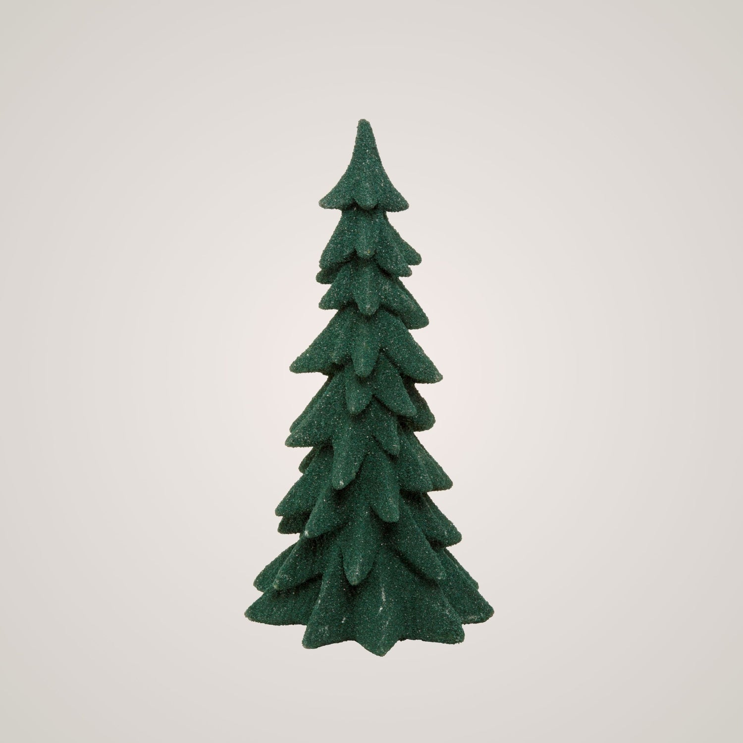 Bring en autentisk julestemning inn i hjemmet med dette nostalgiske juletreet i dyp grønn farge. Inspirert av tradisjonell julepynt skaper treet en varm og klassisk atmosfære. Designet minner om ekte gran, og det subtile hintet av glitter fanger lyset på en naturlig måte, noe som gir et lunt og stemningsfullt uttrykk. Perfekt som borddekorasjon, vinduspynt eller på en hylle – ideelt for deg som vil ha en tidløs, klassisk juledekor.