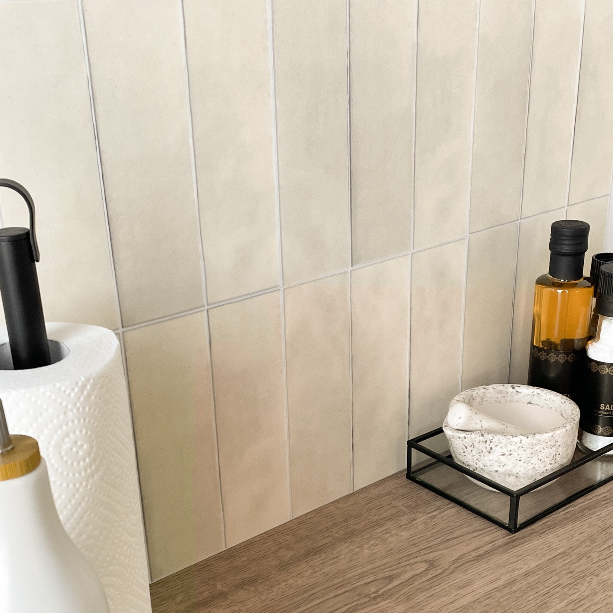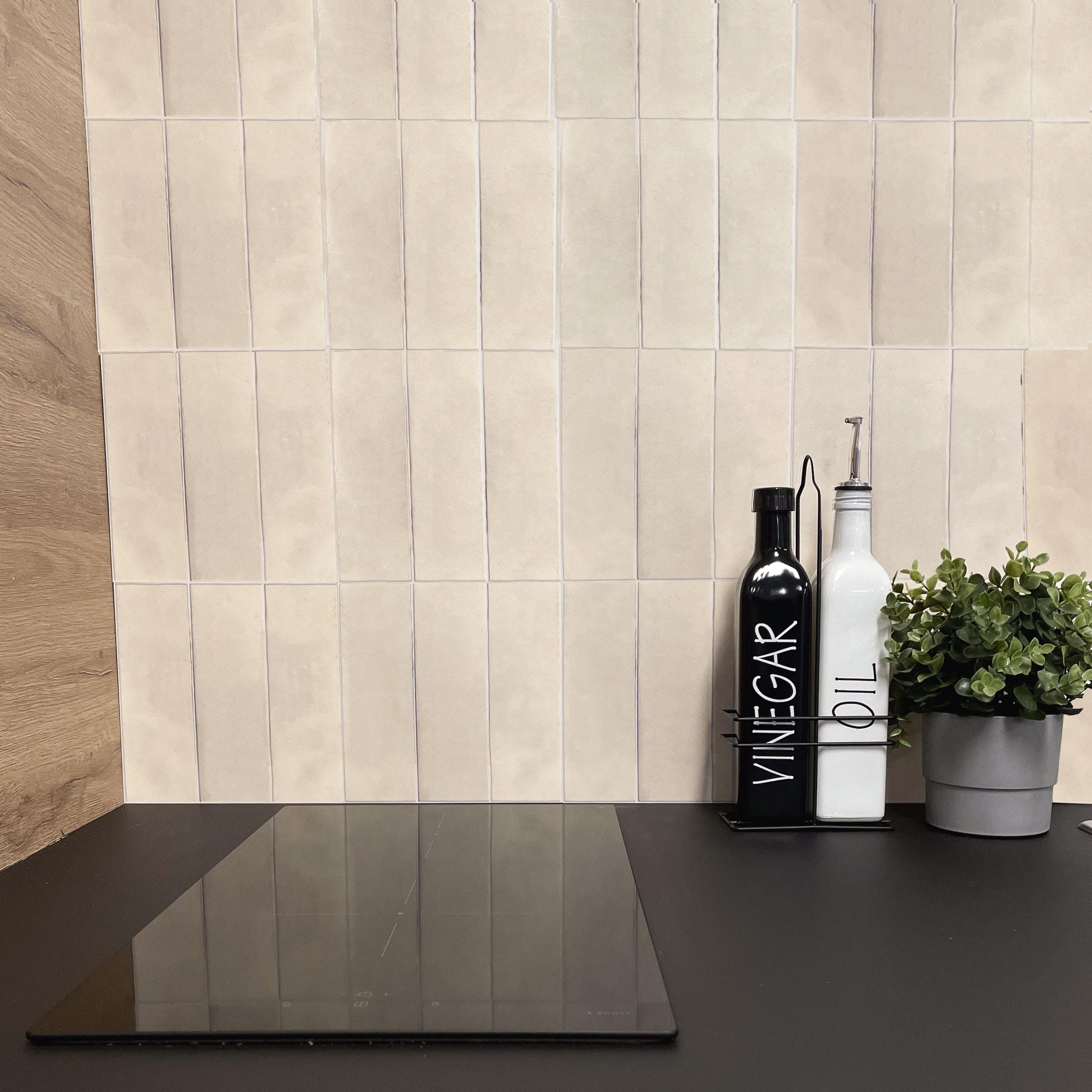 Katja sand självhäftande plattor har en modern design i gulbeige och vitt. Dessa innovativa plattor är perfekta för att gömma gamla kakel ovanför disken eller förnya gamla möbler. Varje bricka kommer med 3 stavar, så här kan du vara kreativ med att antingen lägga alla stavar vertikalt, horisontellt eller en blandning av de två.
