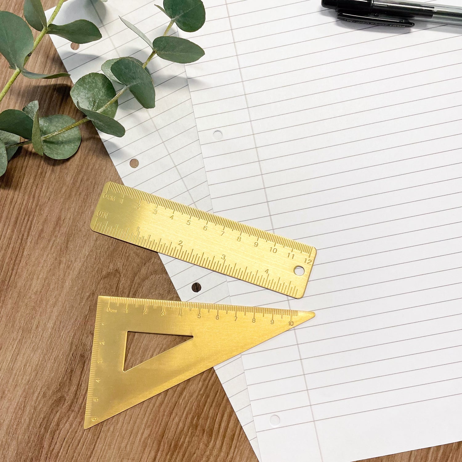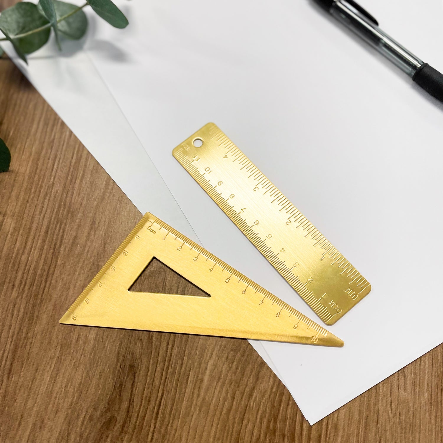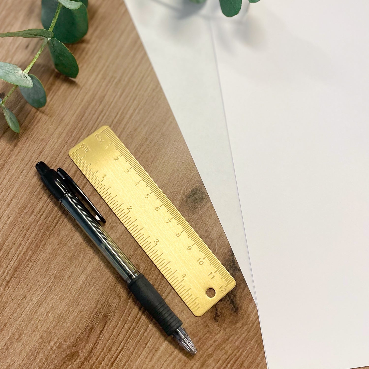 Modern linjal i borstad mässing. Denna stora linjal är både praktisk och snygg. Perfekt för kontoret eller hobbyhörnan.