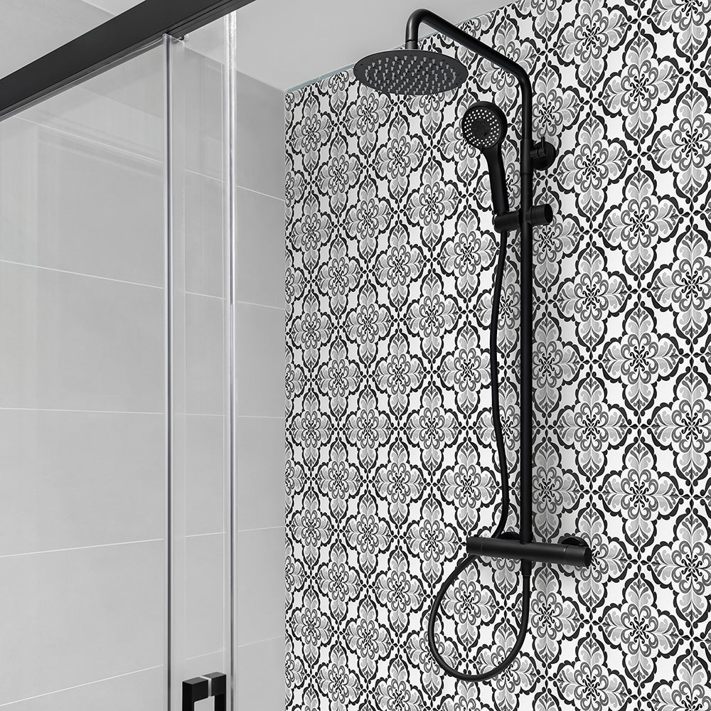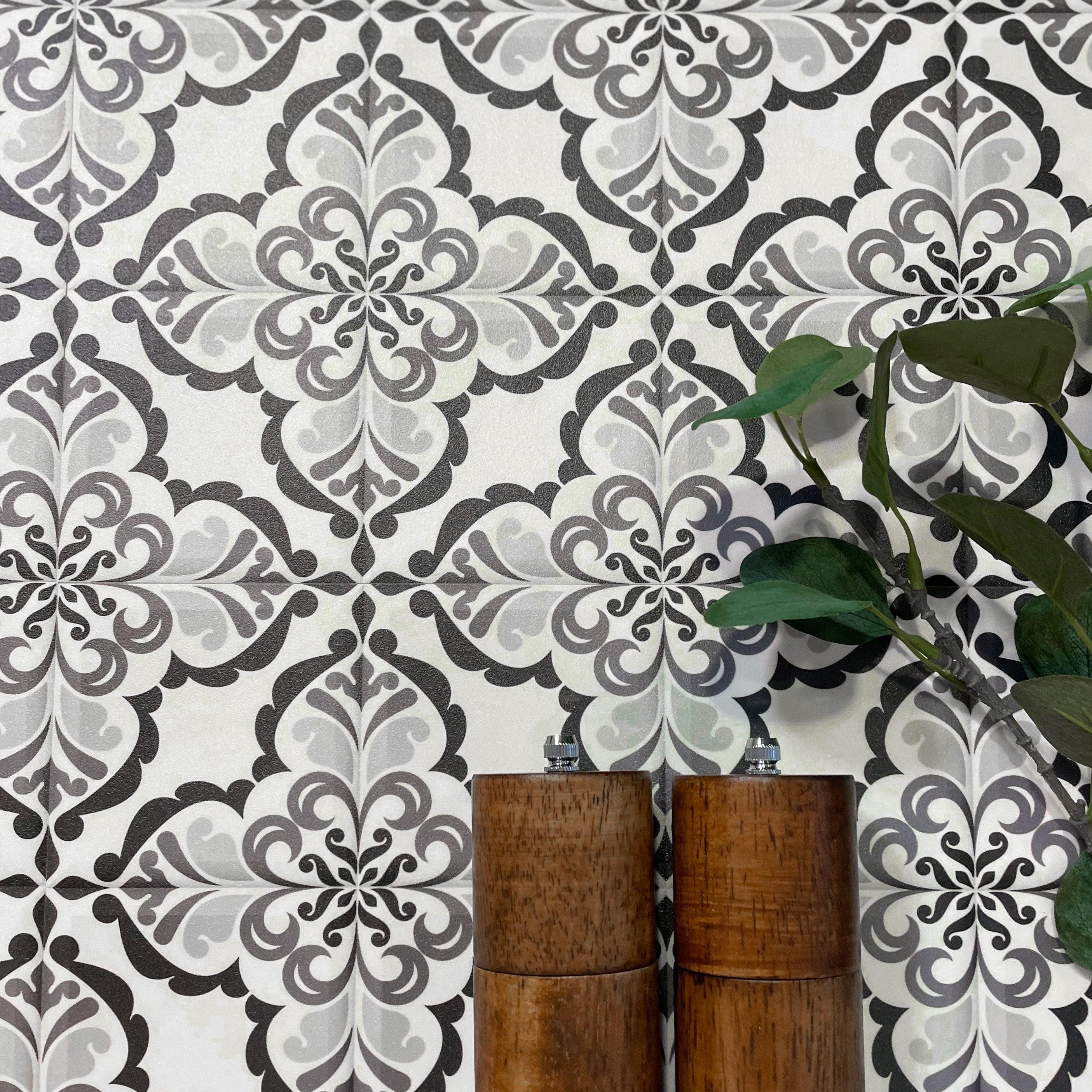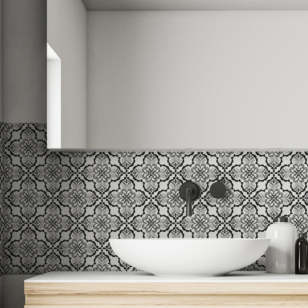Lisbonne självhäftande plattor har en härlig vintagedesign som passar perfekt in i hemmet. Kakelplattorna har ett jättefint vintagemönster i vitt och svart, och blir lika snyggt på golvet som på väggen.