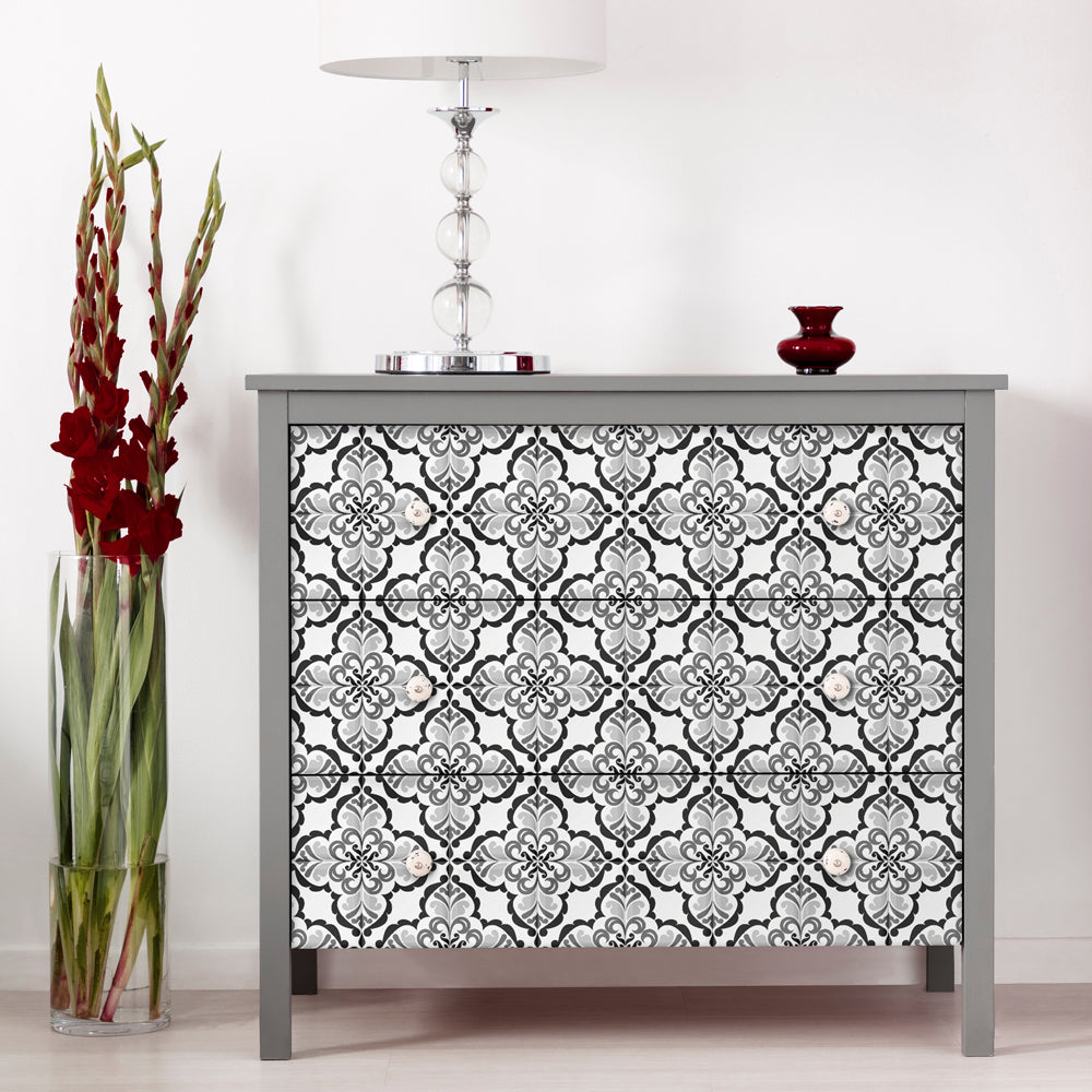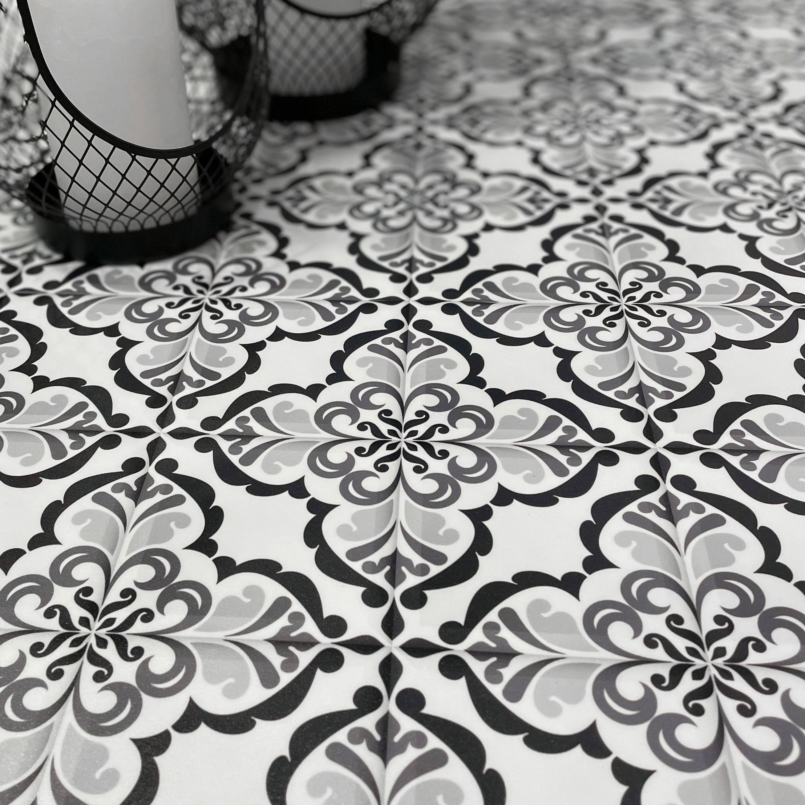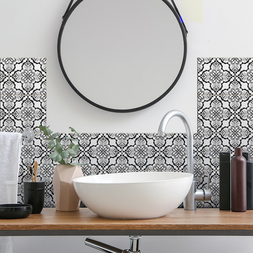 Lisbonne självhäftande plattor har en härlig vintagedesign som passar perfekt in i hemmet. Kakelplattorna har ett jättefint vintagemönster i vitt och svart, och blir lika snyggt på golvet som på väggen.