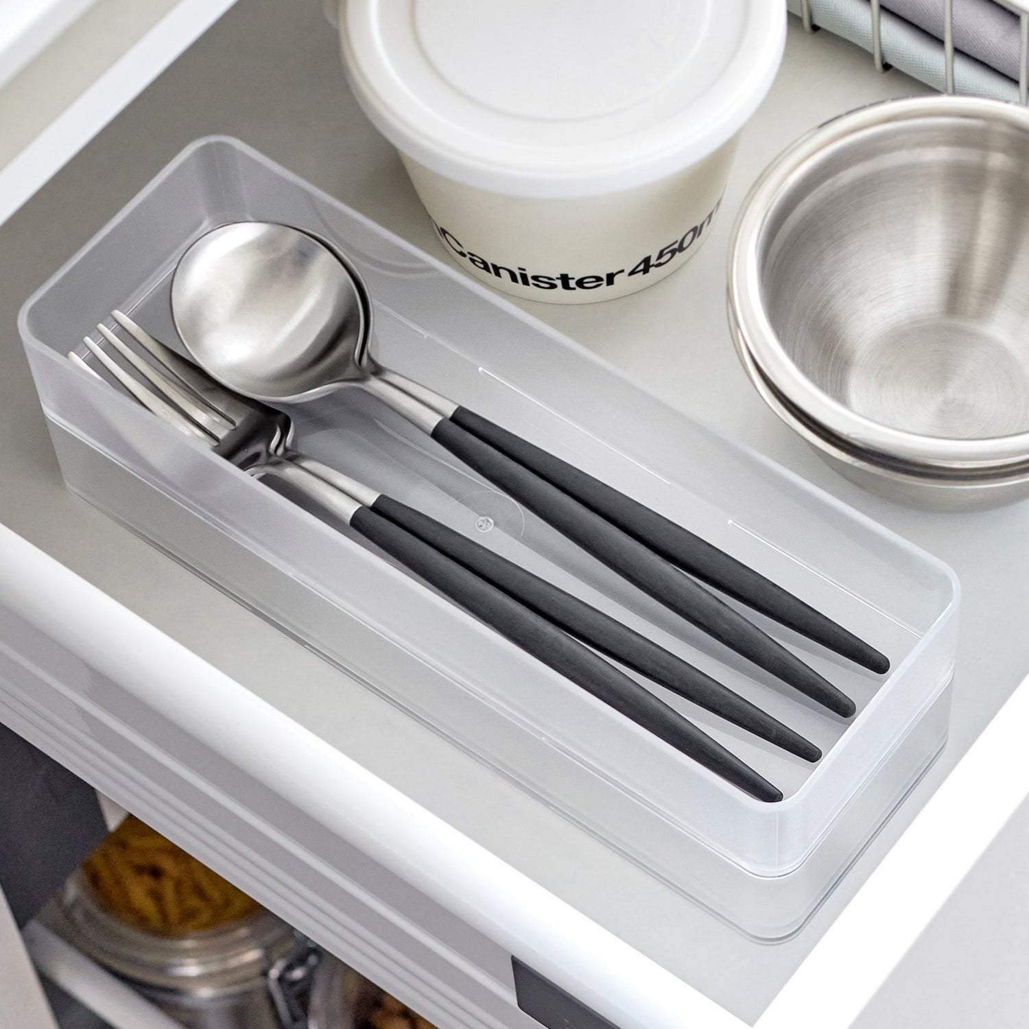 De är designade i robust och hållbar plast och är perfekta för förvaring av bestick, små verktyg eller kosmetika. Staplingsmöjligheten gör dem platsbesparande och flexibla i användning.