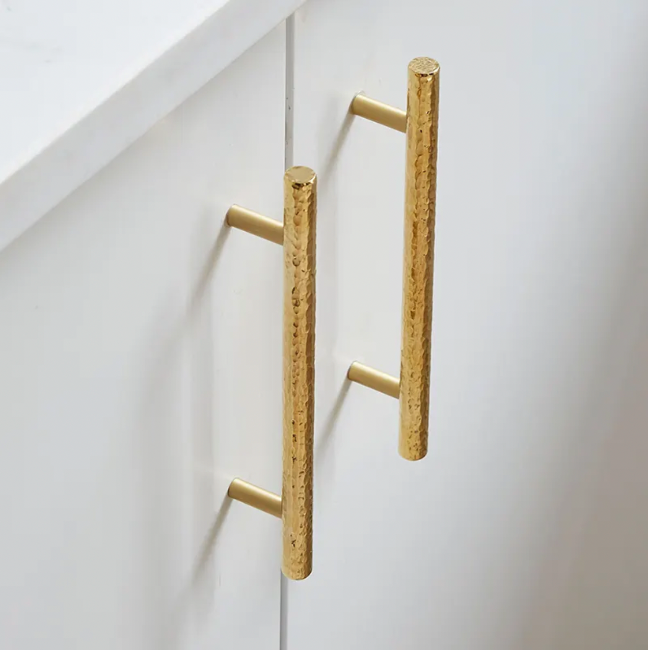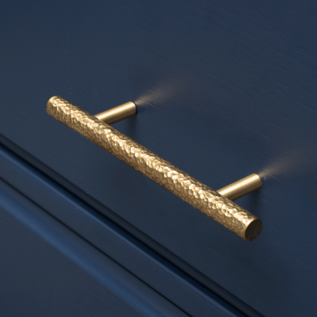Oslo handtag i hamrad mässing. Detta ursnygga handtag har en modern och tidlös design. Perfekt för både byrå, köksmöbler, nattduksbord - gör dina möbler unika med detta härliga handtag.