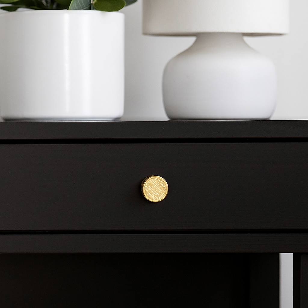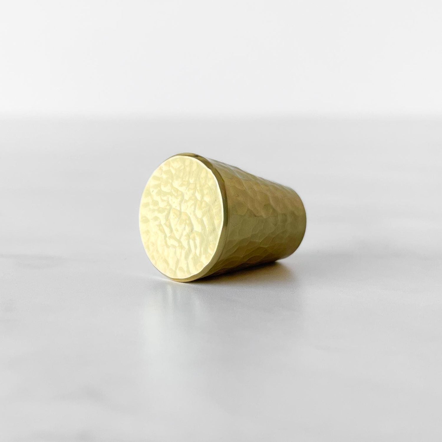 Osloknopp i hamrad mässing. Denna ursnygga knopp har en modern och stilren design. Perfekt för byråer, lådor och skåp, köksinredning, nattduksbord - gör dina möbler unika med denna härliga knopp.