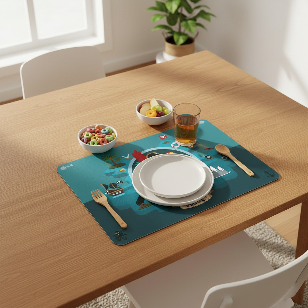 Gör mÄltiderna roligare med denna fÀrgglada bordsunderlÀgg med piratmotiv.