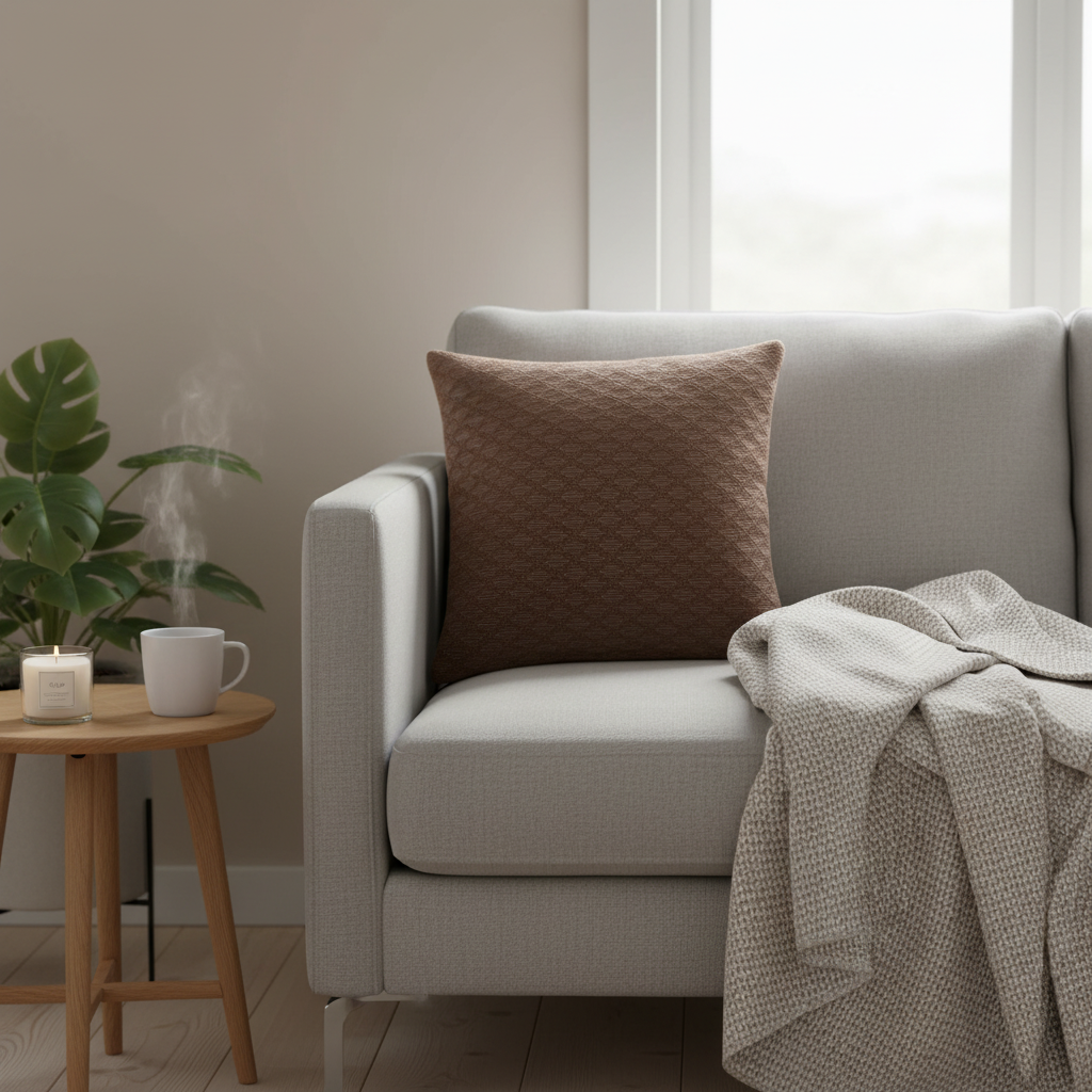 Mykt putetrekk i bomull fra Athen-serien. Den brune fargen gir en varm og innbydende atmosfære, perfekt til både stue og soverom.