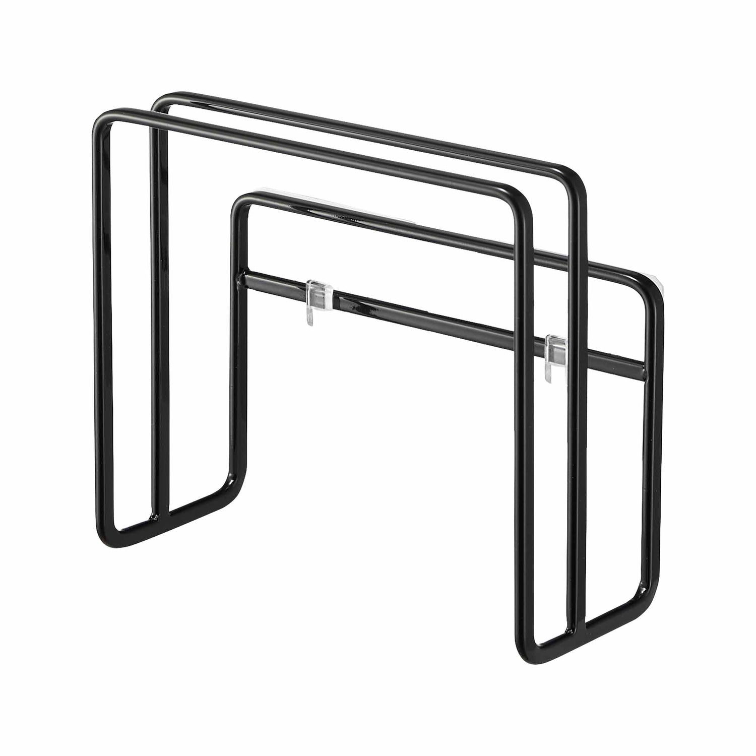 Når skjærebrett blir stående løst på kjøkkenbenken, tar de fort mer plass enn nødvendig og gjør arbeidsflaten mindre ryddig. Med denne sorte holderen får du en praktisk løsning som samler skjærebrettene på veggen og gjør dem enkle å nå i hverdagen.