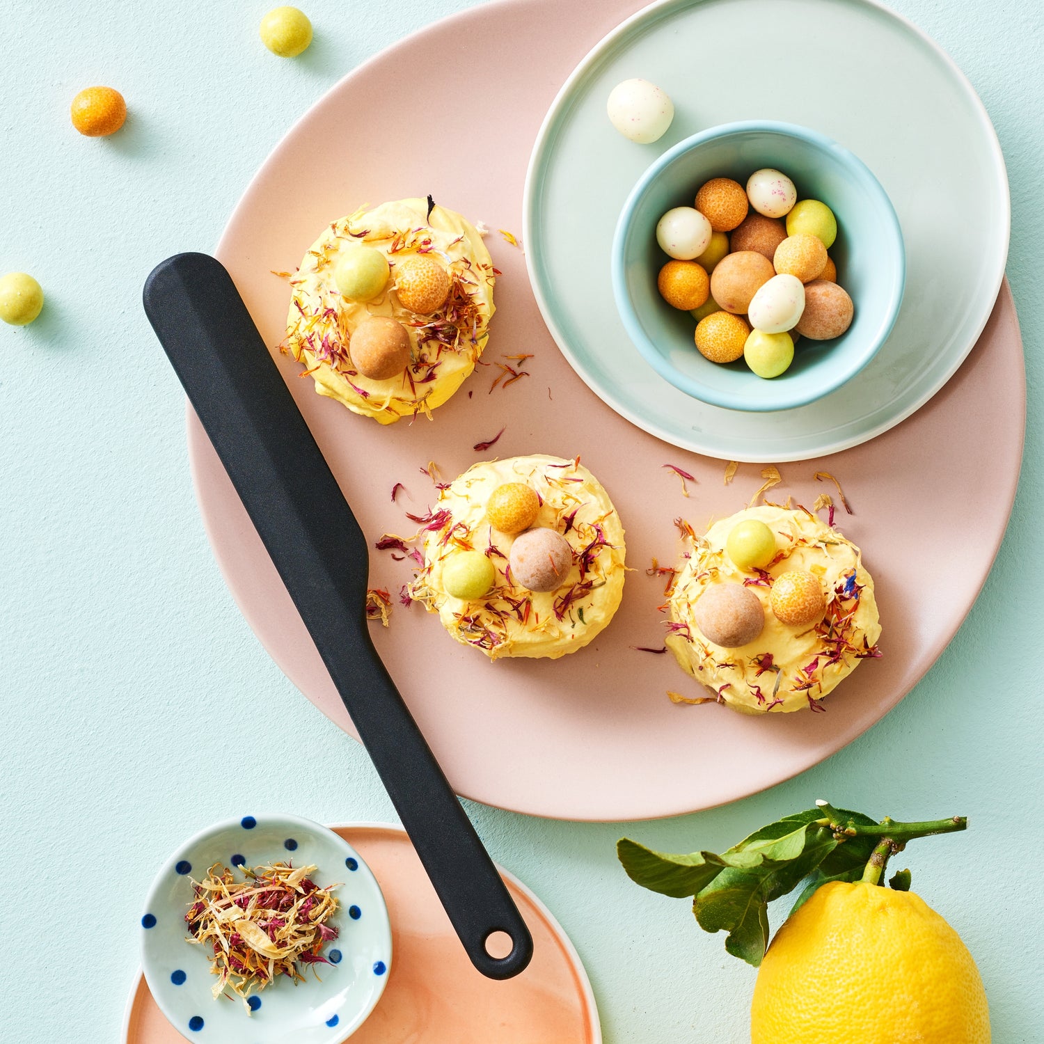Med smalt silikonblad og kjerne i rustfritt stål får du et redskap som kombinerer fleksibilitet med god styrke. Spatelen er skånsom mot non stick overflater og passer godt når du vil jobbe kontrollert med glasur, kremer, fyll og andre mykere masser.