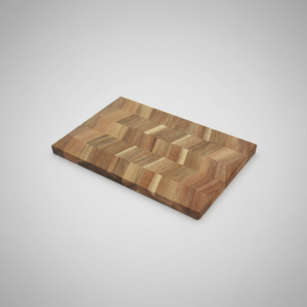 Skärbräda i akaciaträ, fiskbensmönster, 30 x 25 cm