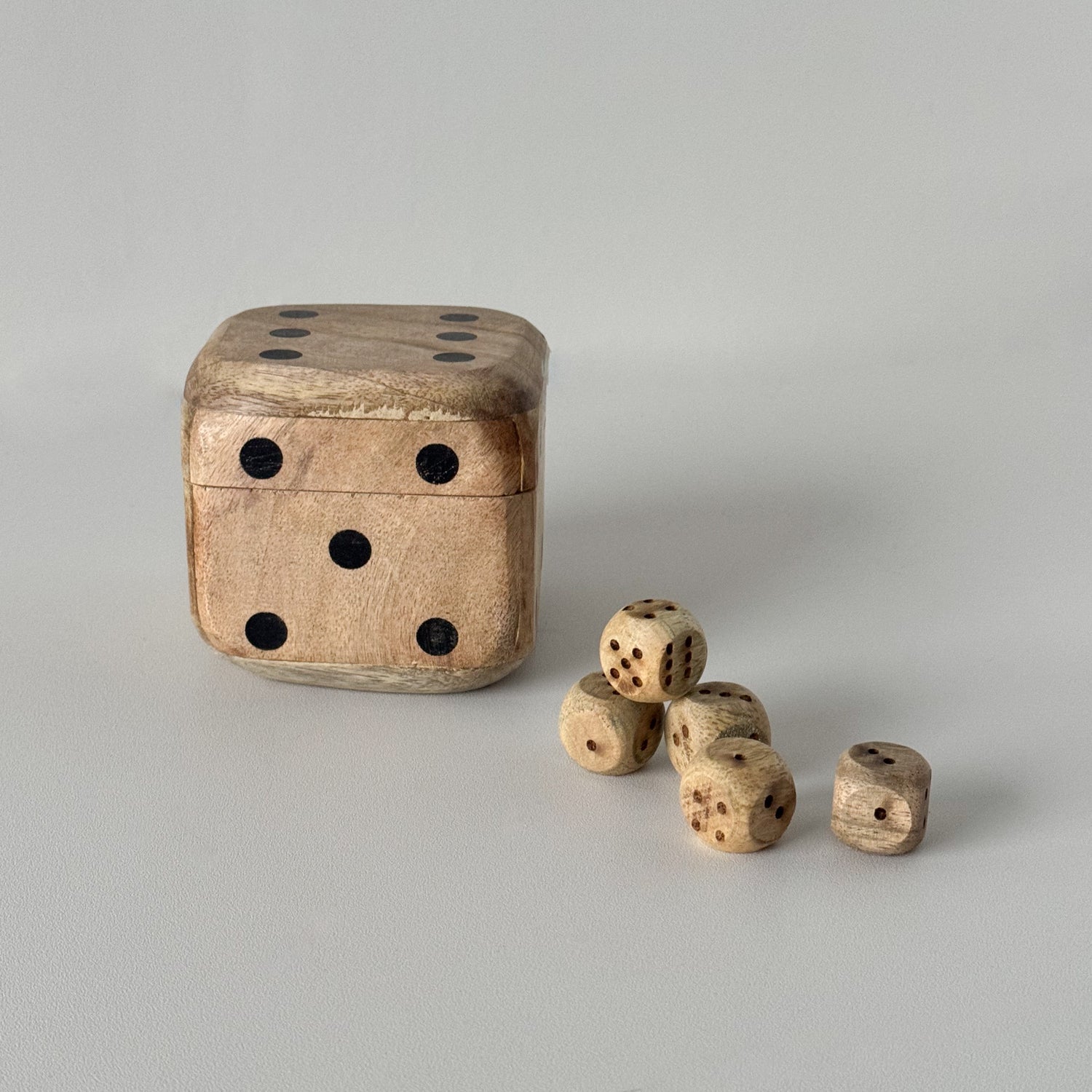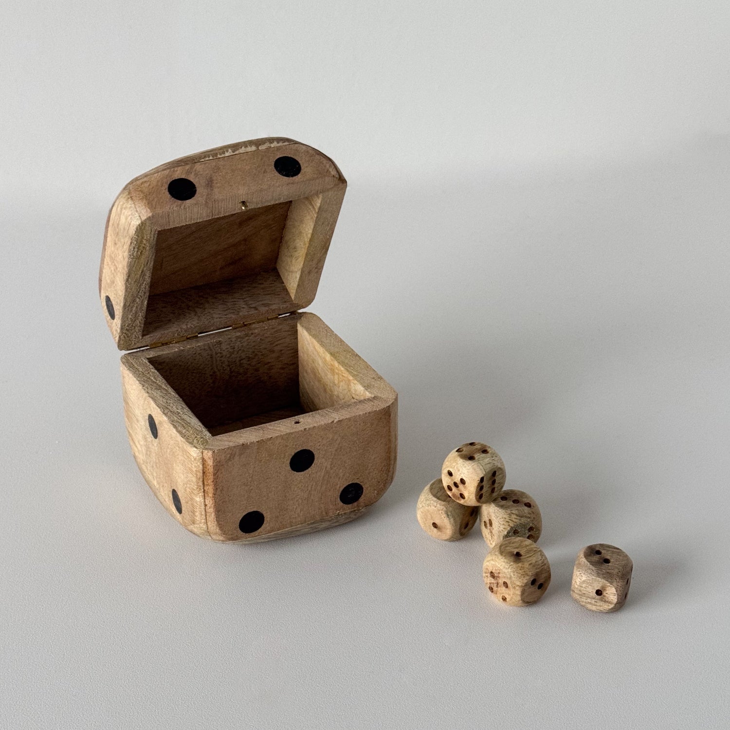 Tärningsspelset tillverkat av mangoträ.