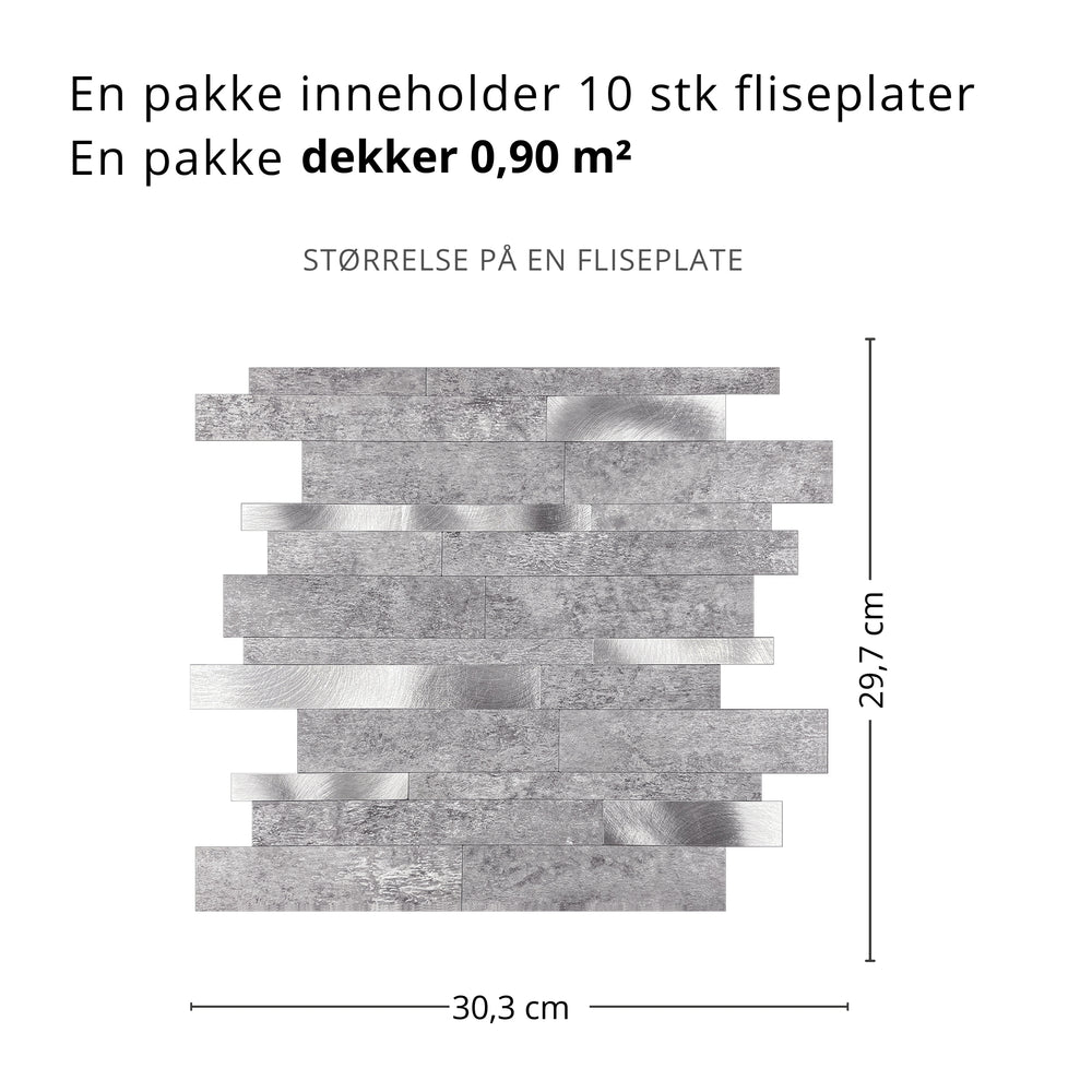 10-pk Stein lys grå XL selvklebende veggfliser regnes som en permanent løsning. Dersom man ønsker å kunne lett fjerne flisene i ettertid anbefaler vi å feste kontaktplast mellom underlaget og flisene.