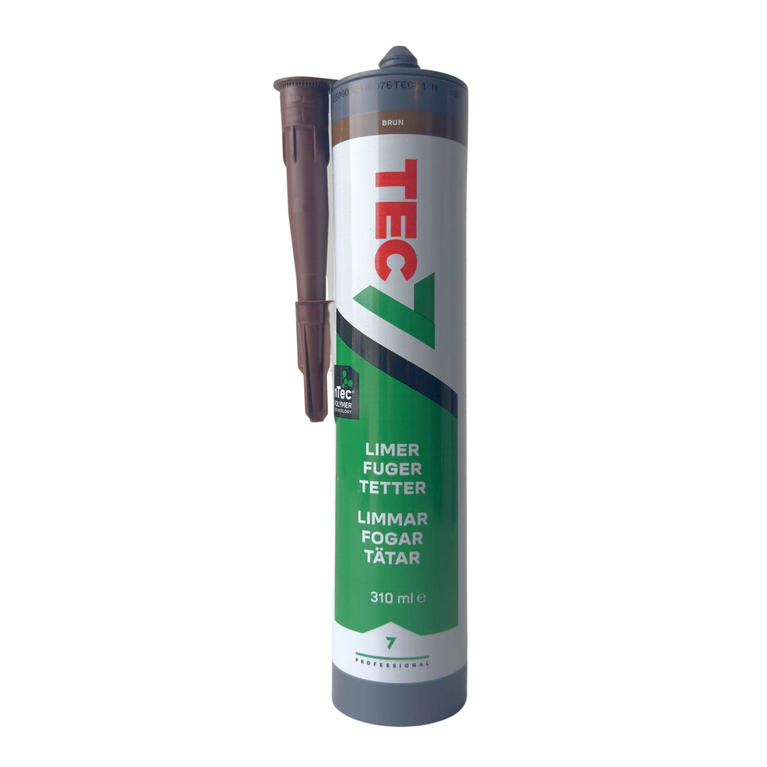 Brun TEC7 fungerer like godt som monteringslim som fugemasse og gir et holdbart, fleksibelt resultat som tåler både fukt, UV, kulde og kjemikalier. Den gir trygg tetting – også på fuktige eller bevegelige underlag.